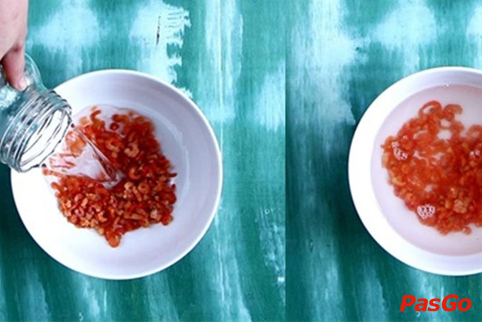 – Rửa sạch tôm khô với nước lạnh rồi ngâm cho mềm, sau đó vớt tôm ra, để ráo