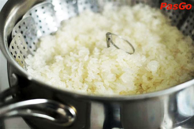 Nấu gạo nếp đến khi chín mềm, dẻo hạt gạo
