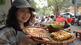 Mới đây, nữ du khách có 1 ngày thưởng thức các món ăn Việt Nam được tạo nên từ bánh tráng. Bữa trưa, cô ăn bánh tráng cuốn thịt heo, chiều ăn vặt với bánh tráng nướng, bánh tráng trộn, bánh tráng cuốn và thử bánh tráng cuốn bánh xèo miền Tây vào bữa tối.