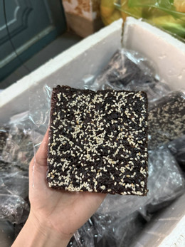 Khi gỡ lớp lá chuối bên trên ra, người ta rắc thêm mè (vừng) rang lên mặt xôi. Món này thường được cắt thành từng miếng nhỏ hình vuông hoặc tam giác, tương đương khẩu phần cho 1-2 người thưởng thức.
