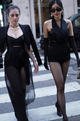 Những chuyến du lịch xa hoa cũng là dịp để Tiên Nguyễn khoe gu thời trang tinh tế. Tại Milan, cô tạo dáng bên Nhà thờ Duomo với áo ba lỗ đen, váy da đen và boots chunky, kết hợp túi MCM nâu. Ở Rome, cô chọn váy lụa đồng ánh kim có chi tiết dây thắt eo phức tạp, kết hợp túi Dolce&Gabbana mini đính pha lê.