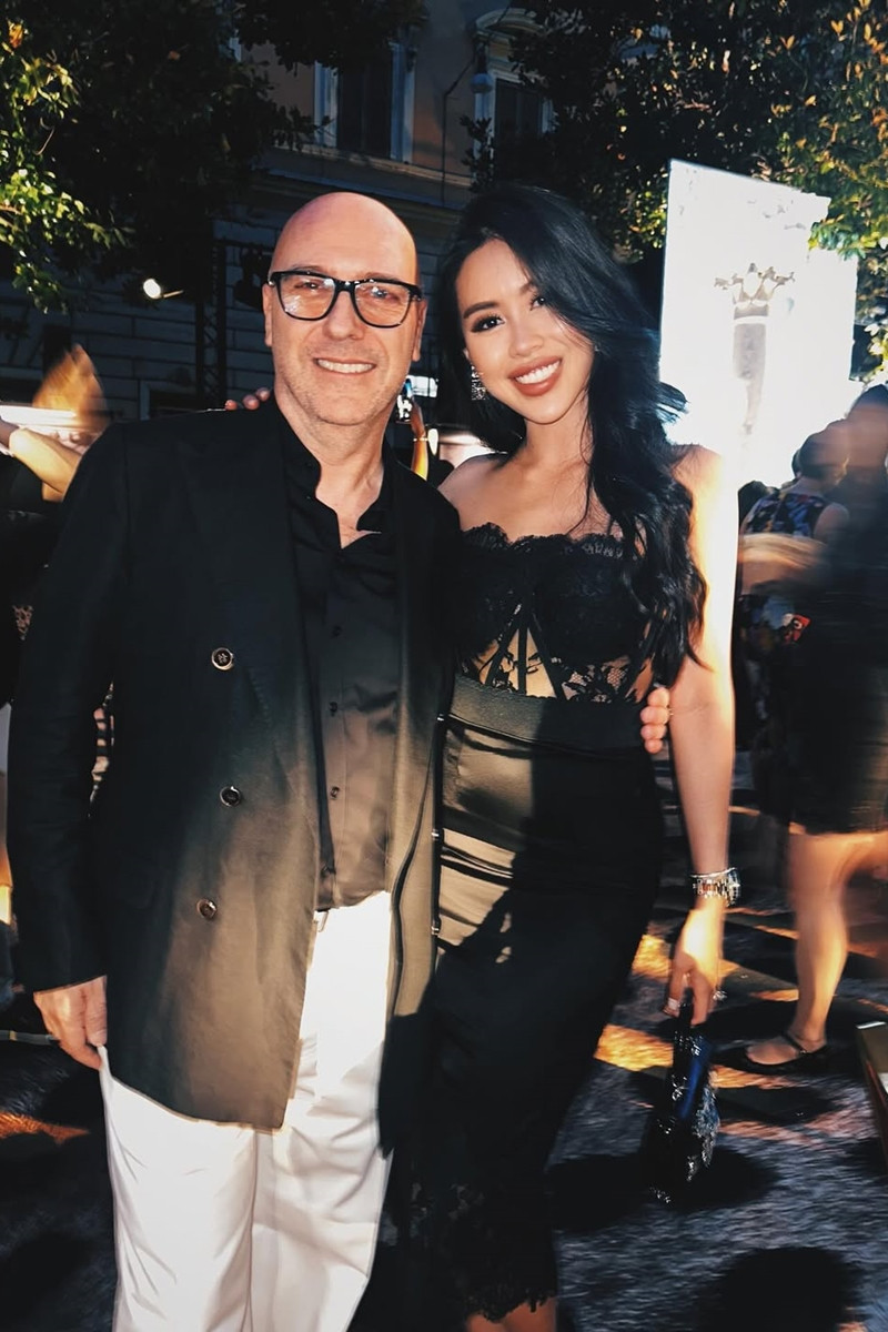 Những chuyến du lịch xa hoa cũng là dịp để Tiên Nguyễn khoe gu thời trang tinh tế. Tại Milan, cô tạo dáng bên Nhà thờ Duomo với áo ba lỗ đen, váy da đen và boots chunky, kết hợp túi MCM nâu. Ở Rome, cô chọn váy lụa đồng ánh kim có chi tiết dây thắt eo phức tạp, kết hợp túi Dolce&Gabbana mini đính pha lê.