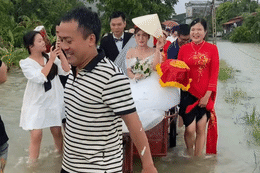 Mới đây, đoạn video ghi lại cảnh chú rể một mình chật vật kéo xe, đưa cô dâu đi qua dòng nước ngập ở Nghệ An thu hút sự quan tâm của cộng đồng mạng.