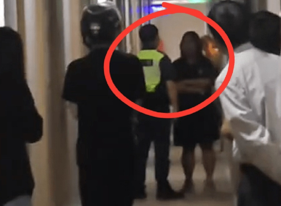 Nhận được tin báo, lực lượng chức năng địa phương đã có mặt tại hiện trường để kiểm tra sự việc. Người vợ lúc này vẫn tiếp tục chửi bới qua cửa phòng, miêu tả nhân tình của chồng bằng những lời cay độc, gọi cô ta là “gái mại dâm”, đồng thời thách thức cả hai “ra ngoài đối chất”.