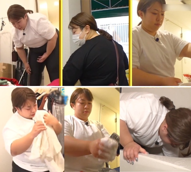 Bác sĩ Takafumi Kudo tiến hành phân tích chi tiết ngày đầu tiên thực hiện thử nghiệm. Cụ thể, Mokada Kona dành 30 phút để dọn dẹp phòng và tủ quần áo – tiêu thụ tổng cộng 126 calo. Tuy nhiên cần lưu ý do cân nặng của cô vốn lớn nên lượng tiêu thụ sẽ cao gấp đôi so với người bình thường, lượng này tương đương với 40 phút chơi bóng rổ.