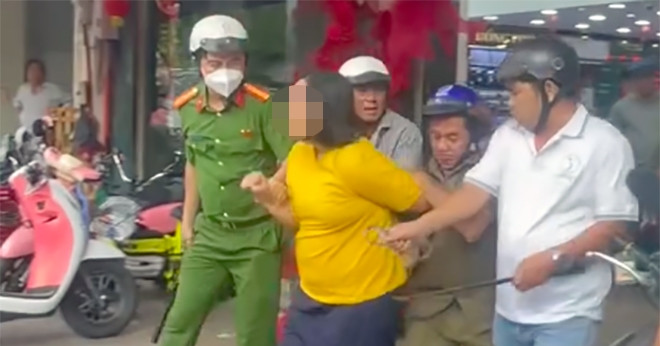 Công an khống chế người phụ nữ cầm dao tới tiệm vàng đập phá