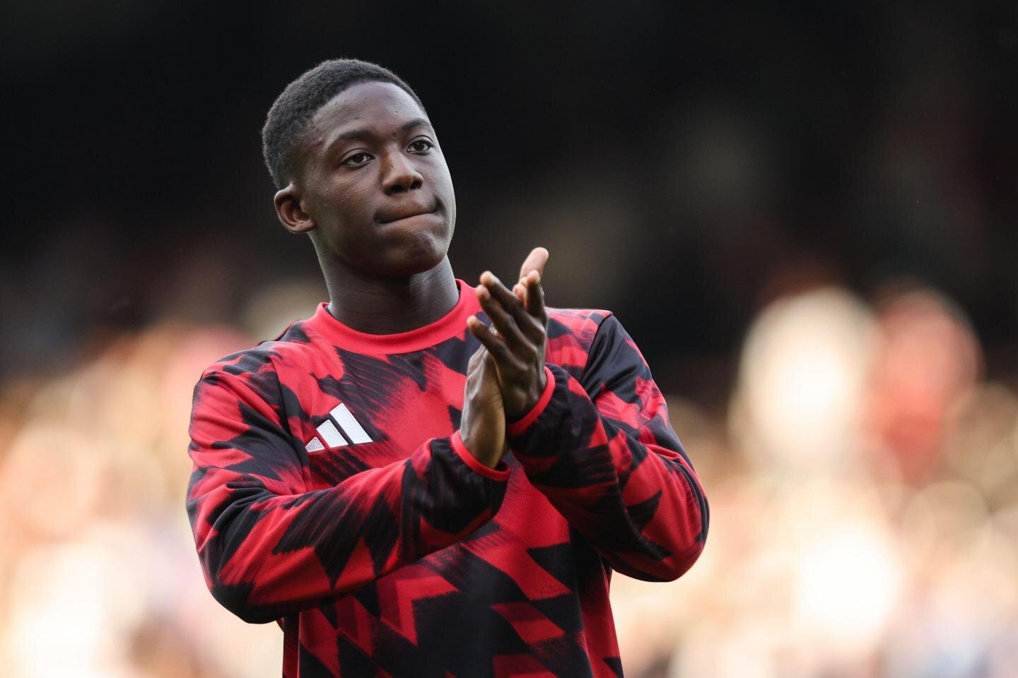 Kobbie Mainoo chạy khởi động ngoài đường biên nhưng rốt cuộc bị ông thầy Bồ Đào Nha ngó lớ, không được vào sân đá phút nào.