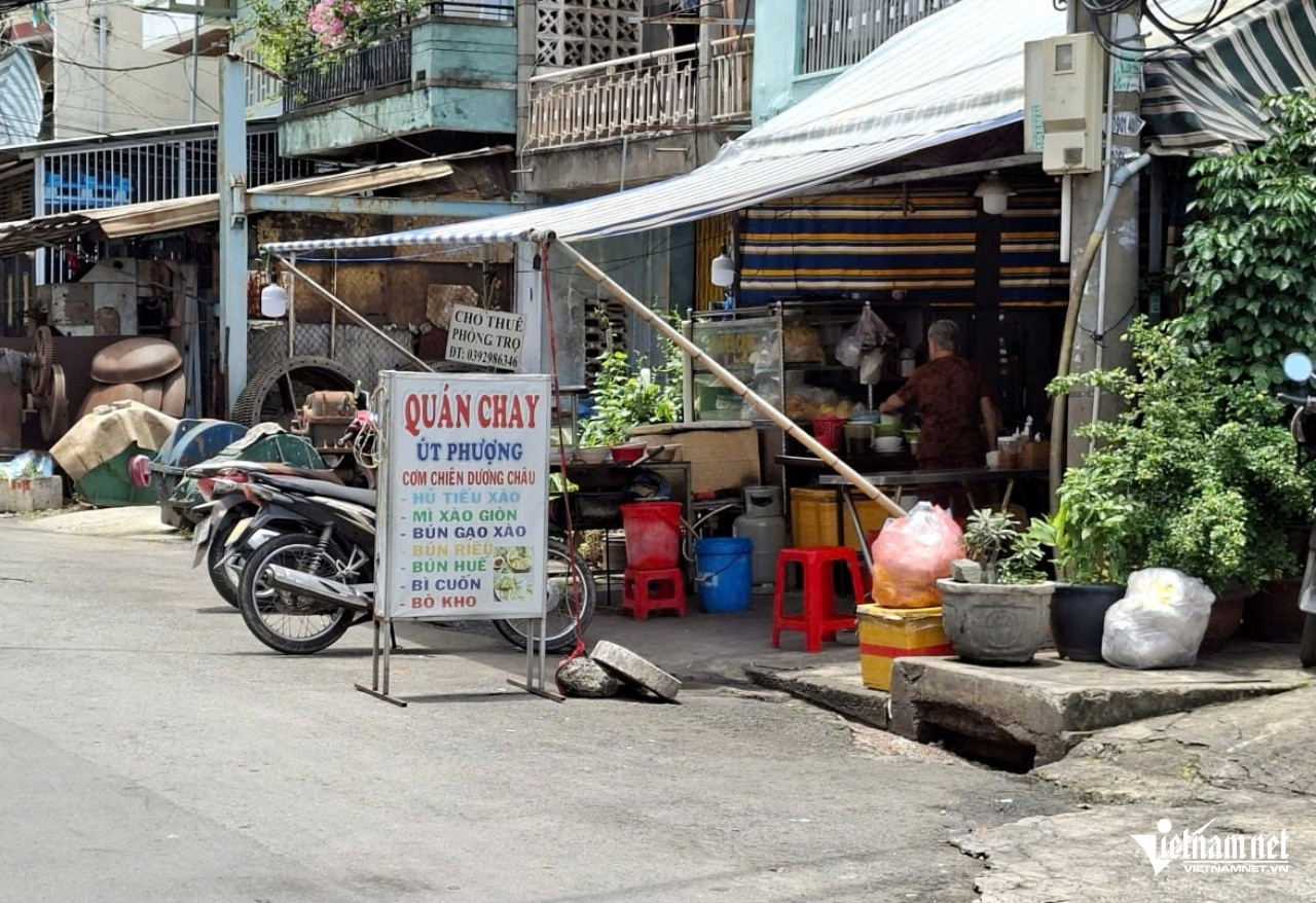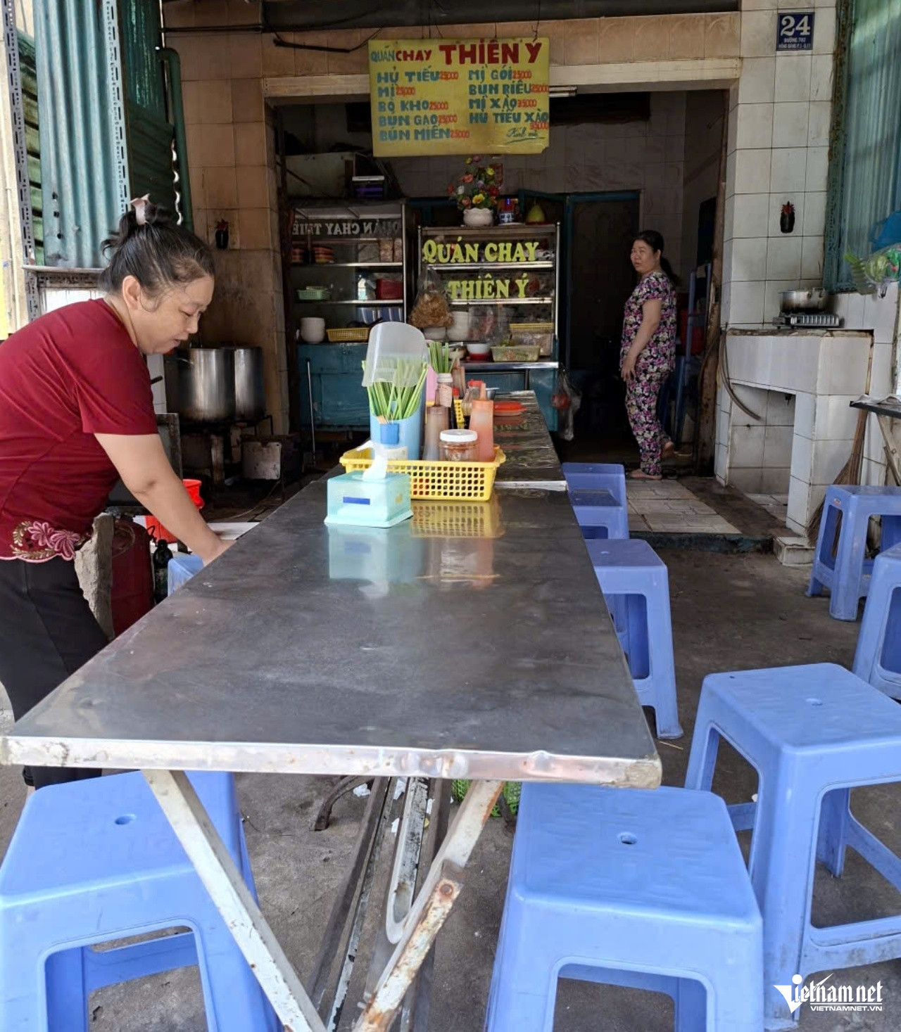 Cách đó không xa, quán chay Thiên Ý – một trong những quán lâu đời nhất trong hẻm – cũng trong cảnh tương tự, dù đã quá trưa vẫn không có khách.