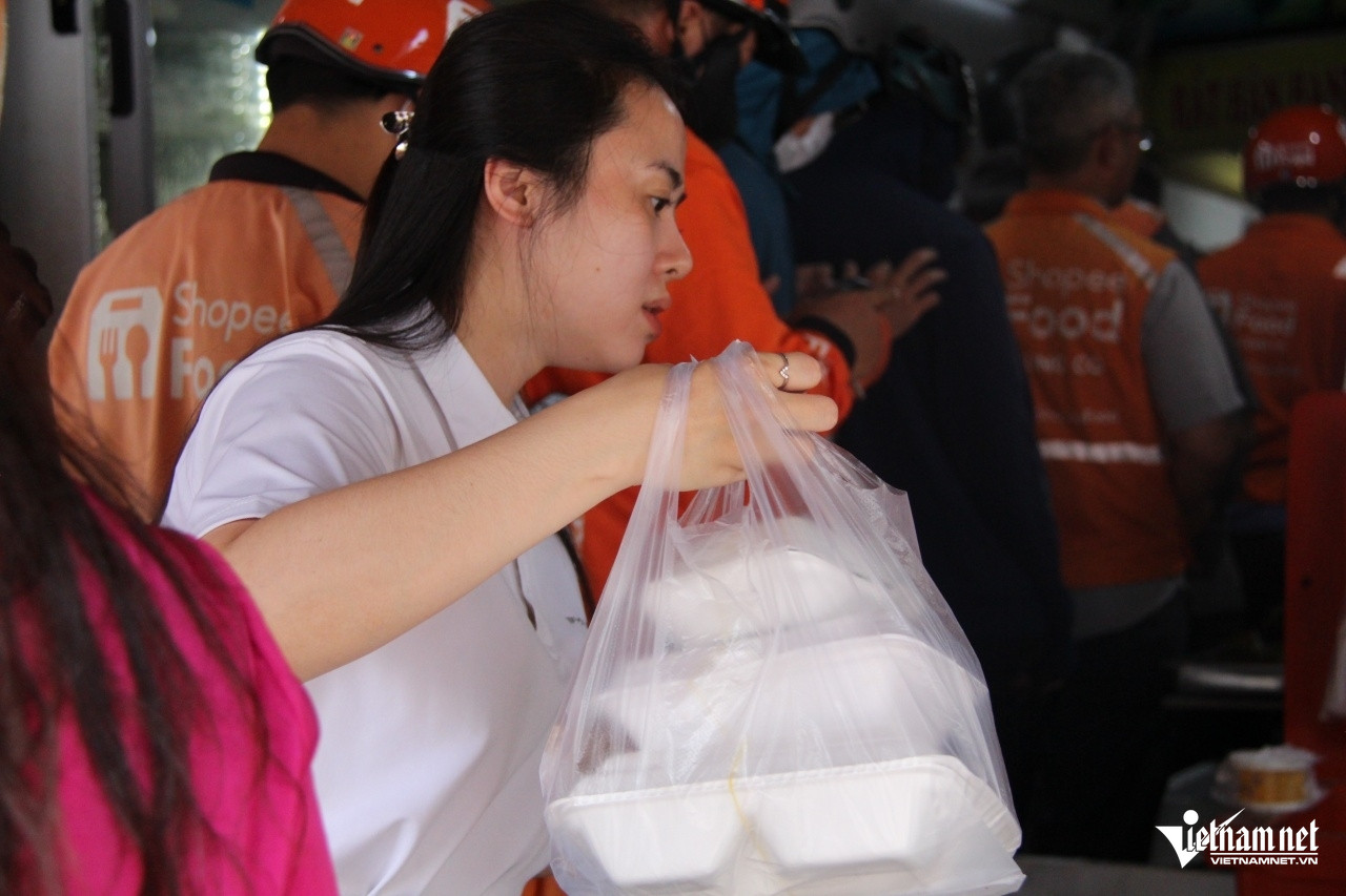 Nhiều thực khách khi đến quán ăn, chứng kiến cảnh đông đúc, không còn chỗ ngồi đã chọn cách mua cơm mang đi.