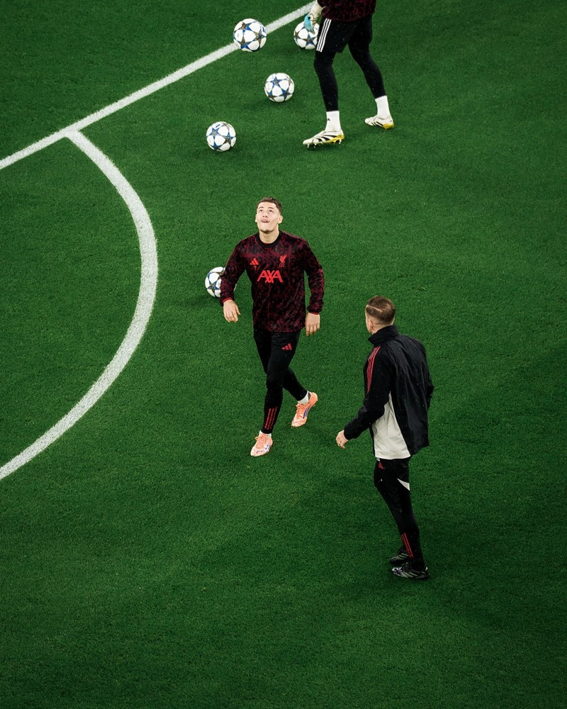 Từ tình huống cố định bên cánh phải của Liverpool, Szoboszlai treo bóng vào vòng cấm để Mac Allister đánh đầu tung lưới Real Madrid.